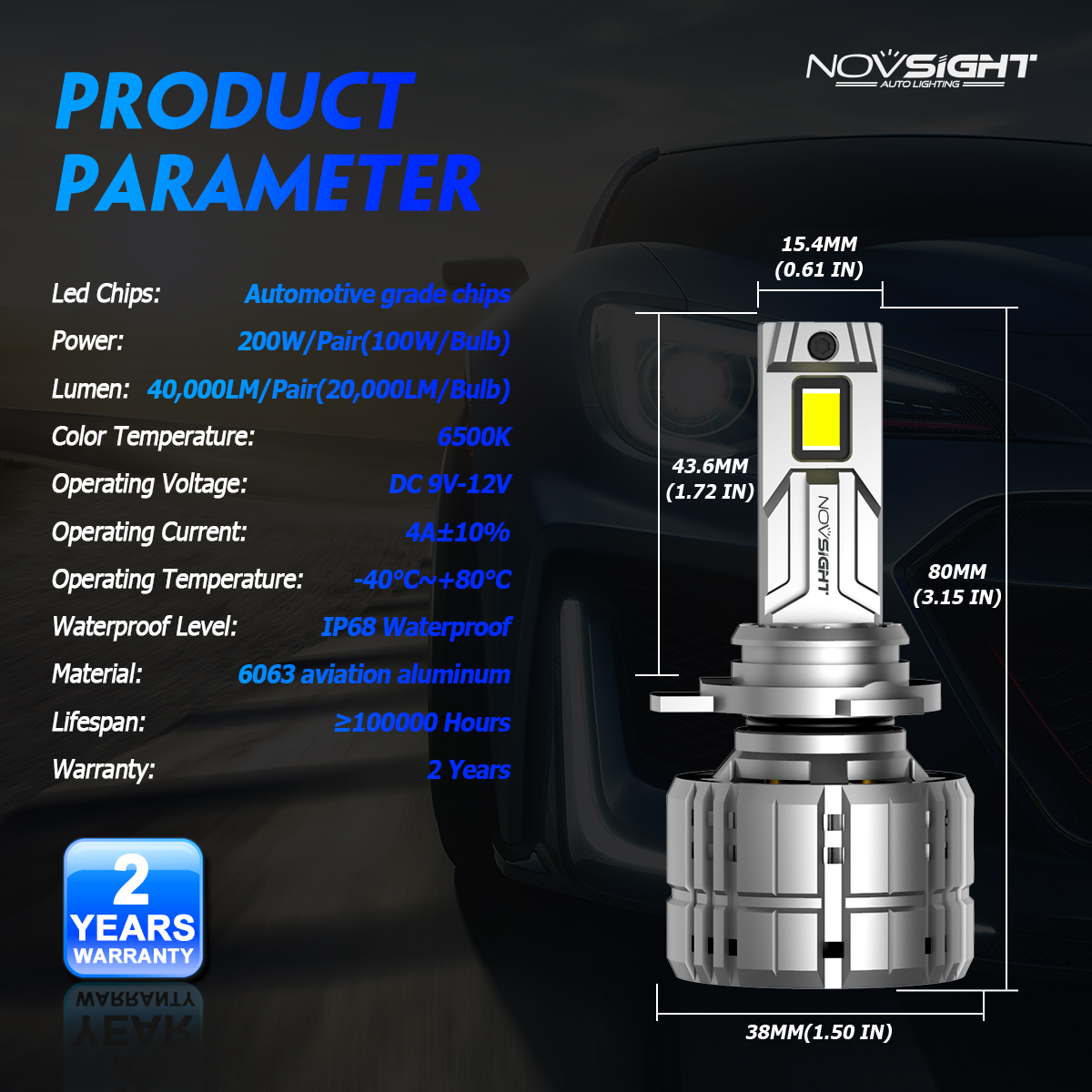 - Novsight N60 LED bulbs feature advanced lighting technology, 200 watts, 40,000 lumens of light output, giving you 900% of the light output. The brightest alternative to halogen bulbs..